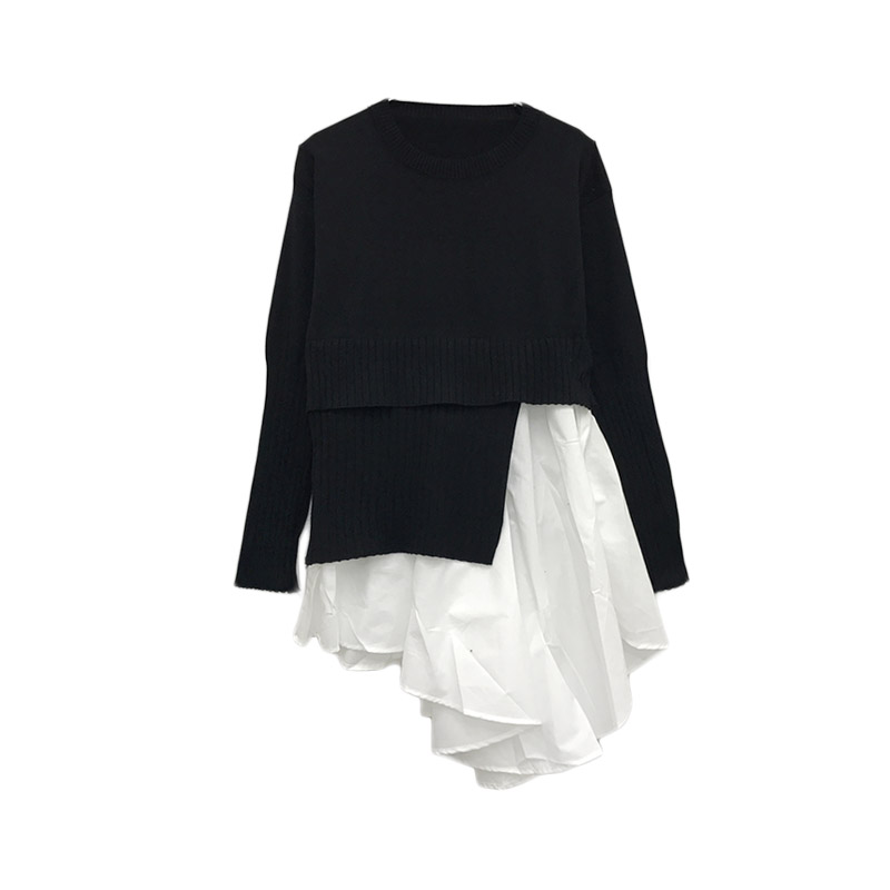 毛衣女秋冬2018新款短款雪紡燈籠長袖拼接針織衫氣質百搭打底衫潮