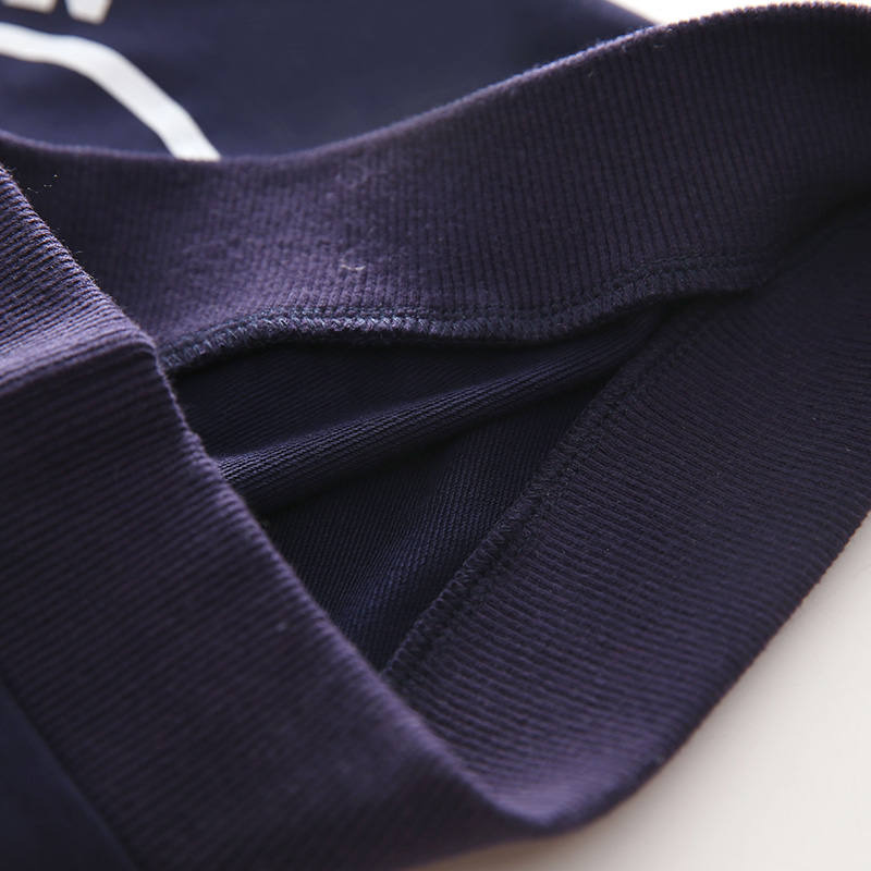此款米白色印花工藝為印染,藏青色為膠印