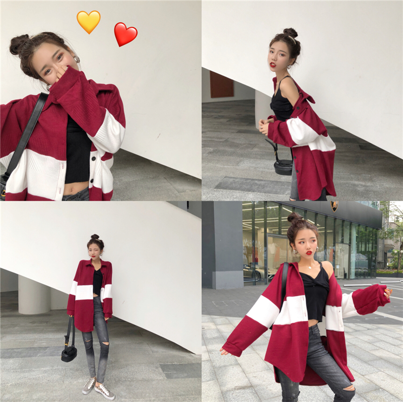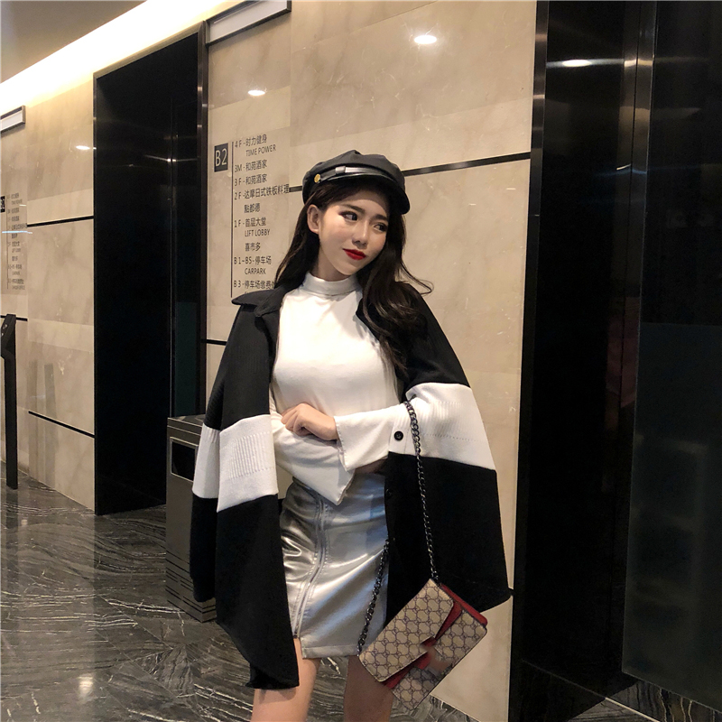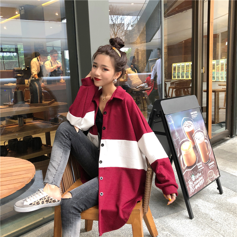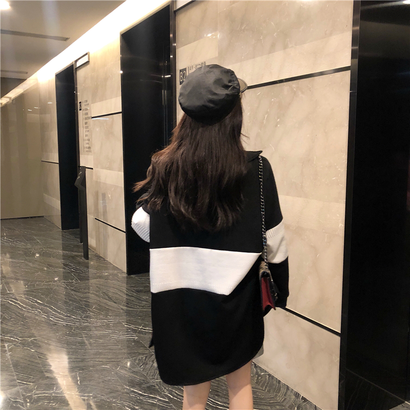 / 慵懶襯衣女chic風寬松百搭撞色中長款外套女秋裝2018新款顯瘦上衣