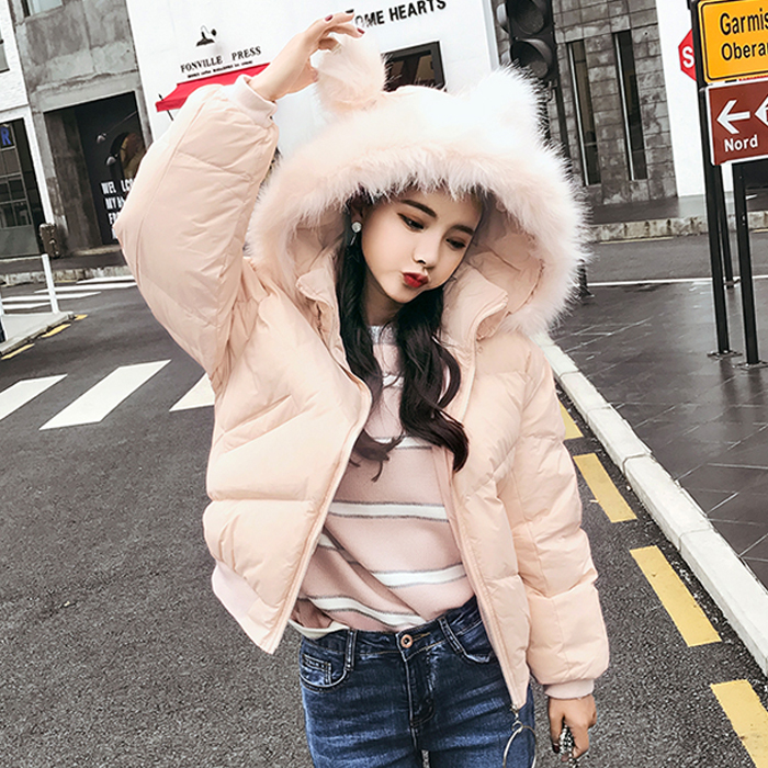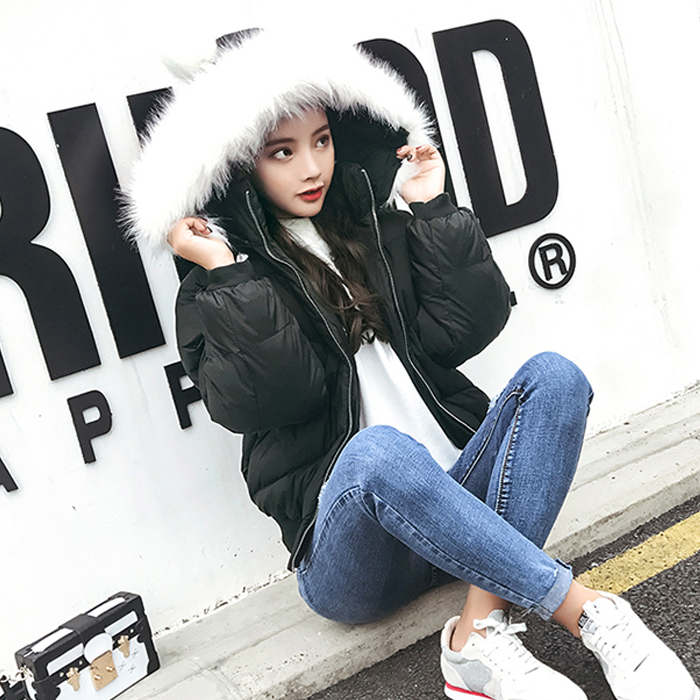 / 秋冬新款韓版時尚毛領連帽棉服外套女裝寬松顯瘦長袖棉衣開衫上衣