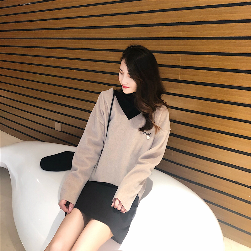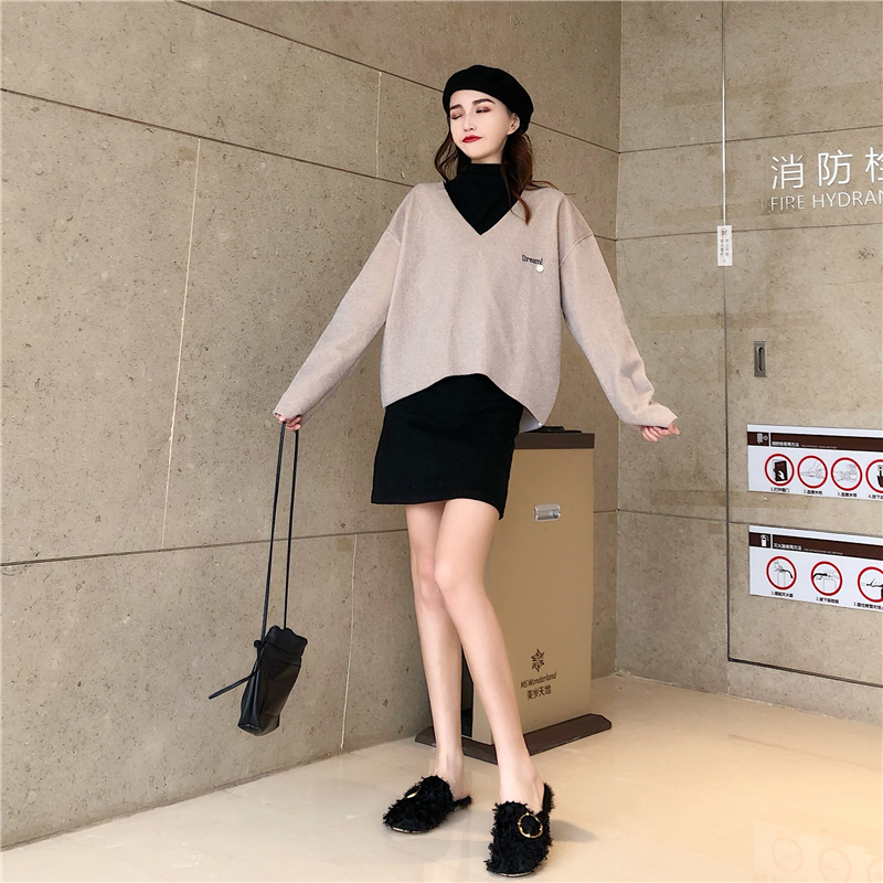 韓版寬松套頭針織衫+針織高腰包臀半身裙時尚女神套裝秋兩件套潮
