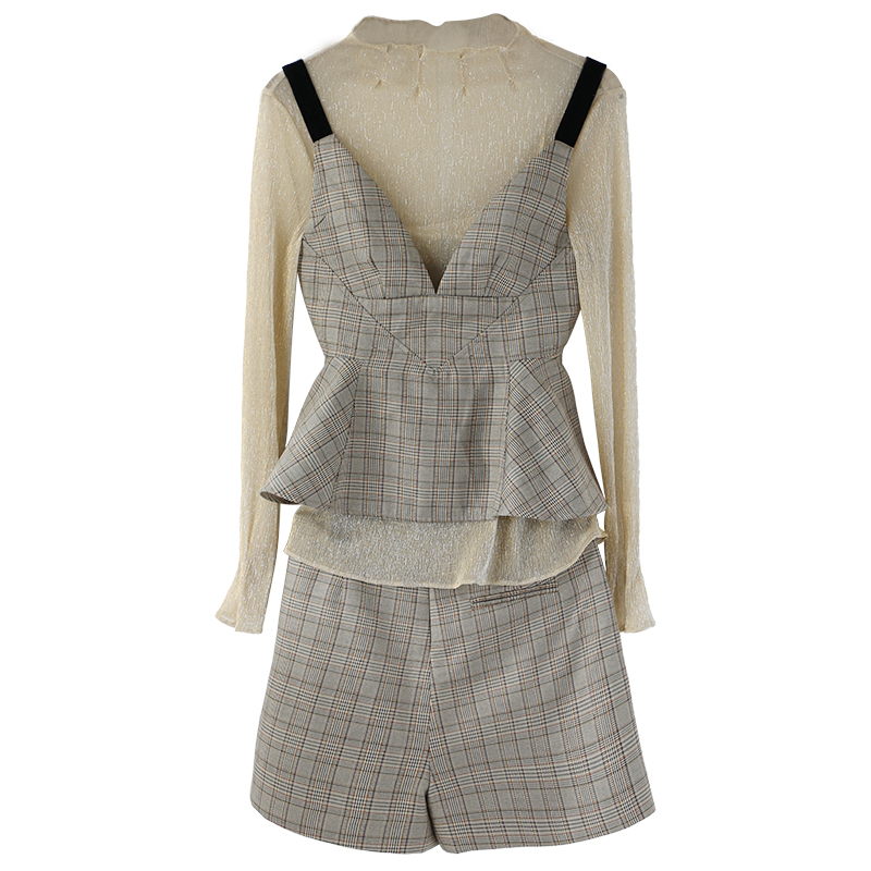 名媛氣質套裝女2018秋季新款時尚網紗上衣時髦短褲氣質三件套潮