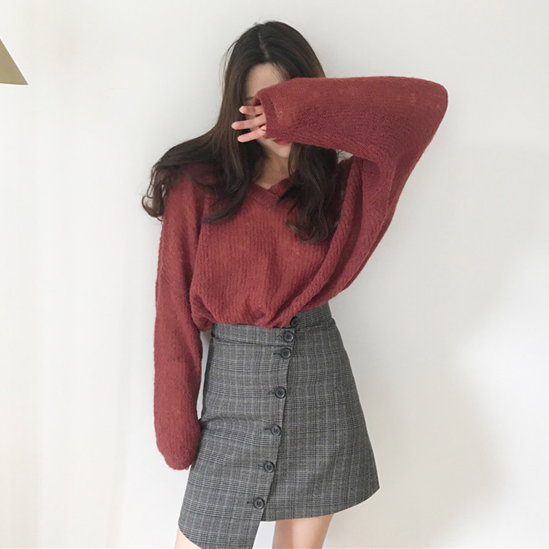 / 寬松慵懶風毛衣女2018新款學生套頭針織衫秋裝V領長袖休閑上衣潮