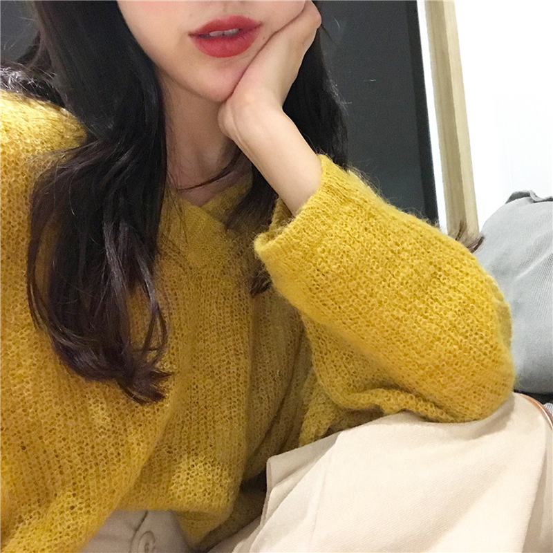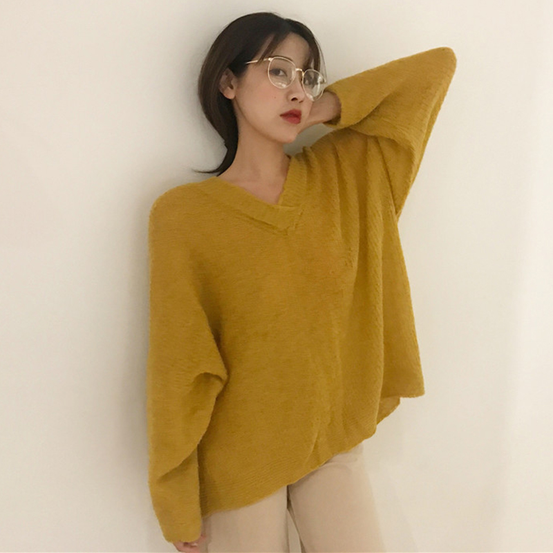 寬松慵懶風毛衣女2018新款學生套頭針織衫秋裝V領長袖休閑上衣潮