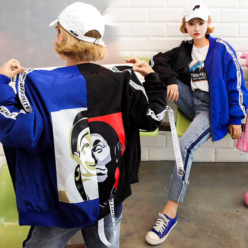 情侶裝韓版外套2017春秋新款原宿寬松百搭織帶印花棒球服女學生潮