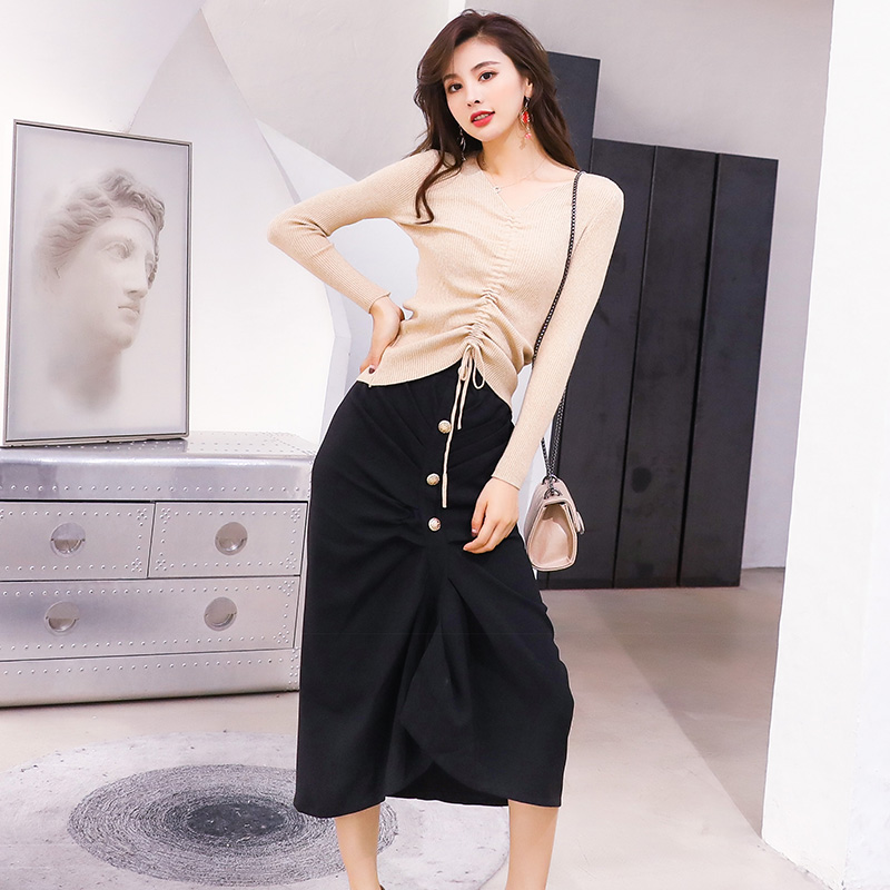 / 名媛氣質秋冬季女套裝時尚網紅中長款高腰字半身裙毛衣針織衫兩件