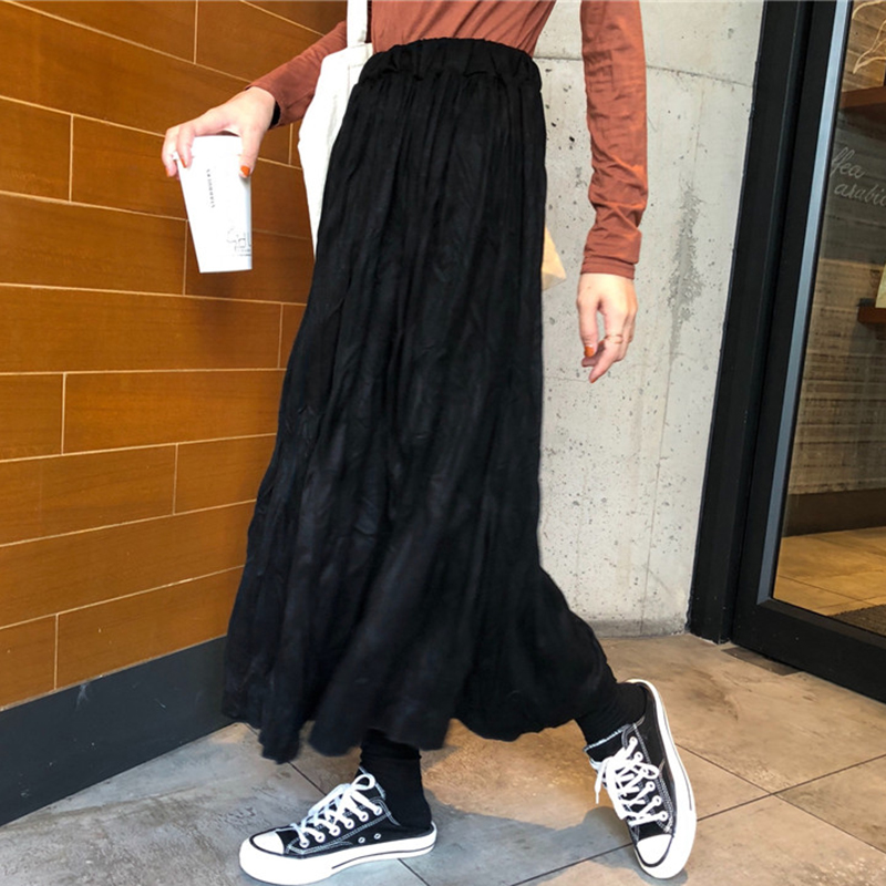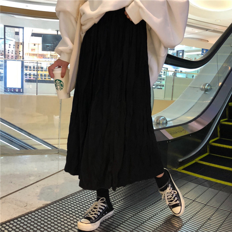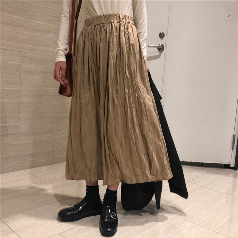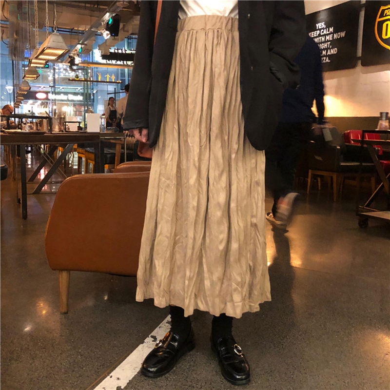/ 氣質chic半身裙子女秋冬裝2018新款韓版時尚高腰顯瘦壓褶A字長裙