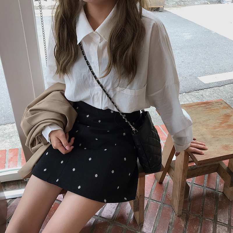 / 秋季韓版寬松氣質波點A字裙半身裙高腰顯瘦包臀裙短裙學生裙子女