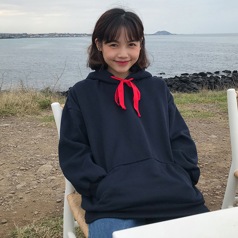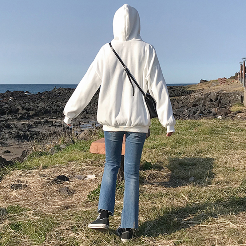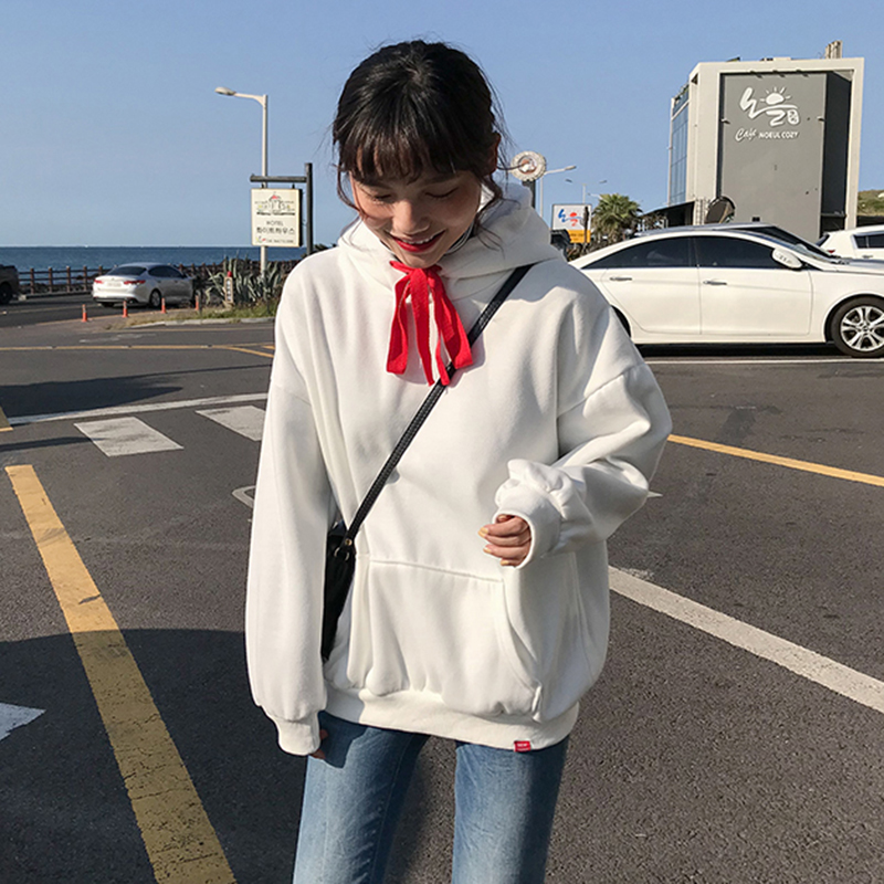 秋冬女裝2018新款學院風百搭寬松加絨字母刺繡系帶連帽衛衣外套潮