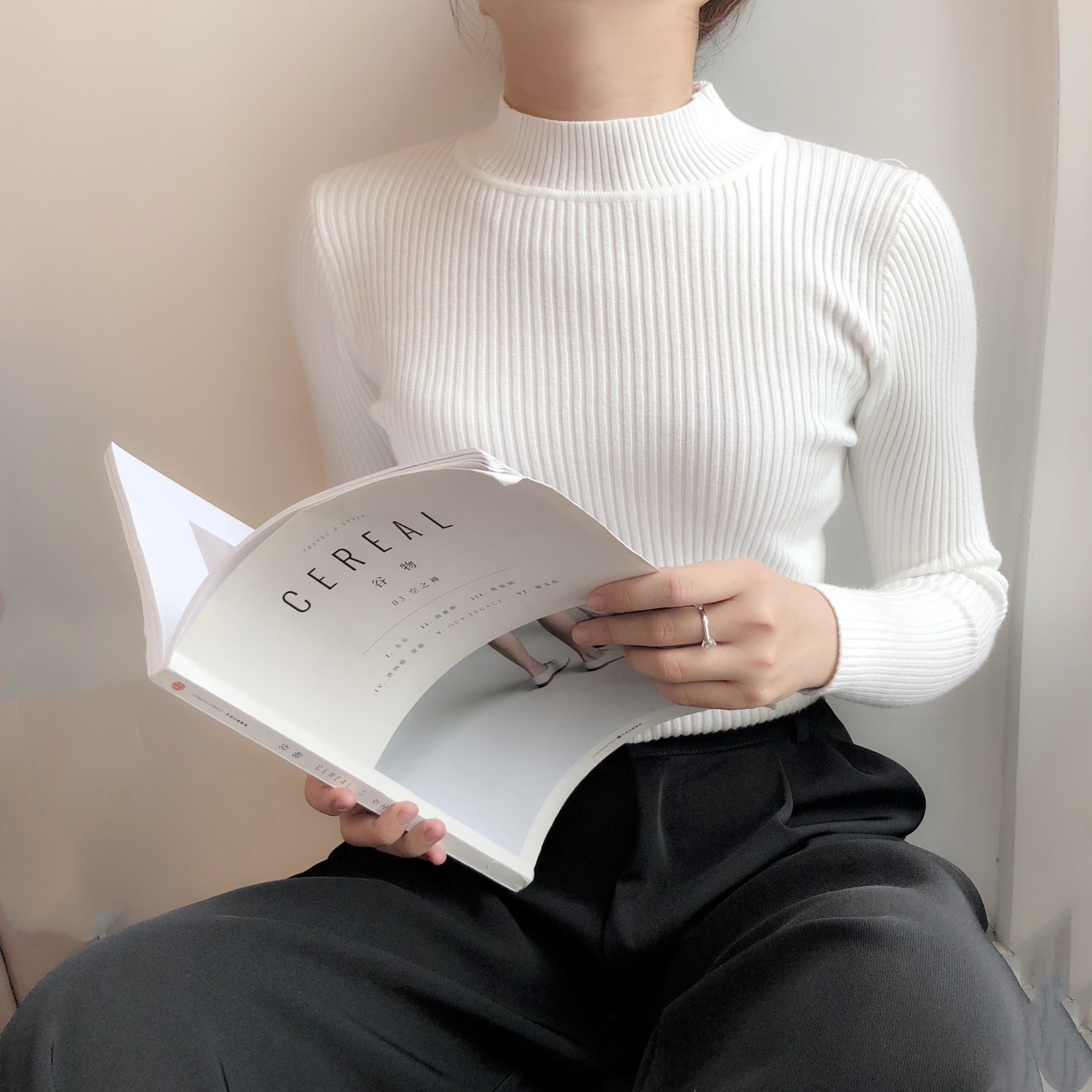 半高領款 很基礎休閑的款式單穿也ok 現在穿就搭配外套就對啦