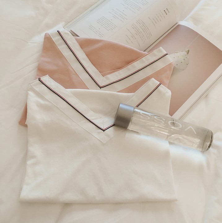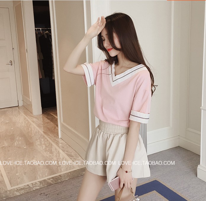 / 2017夏季新款韓版百搭寬松顯瘦學院休閑前后V領短袖T恤上衣女裝潮