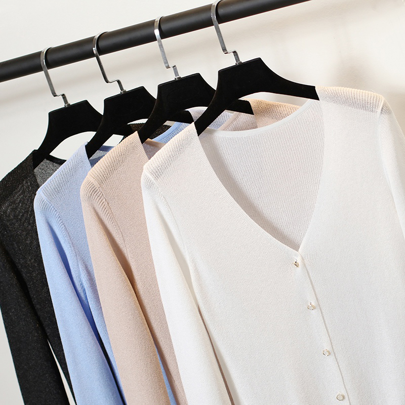 冰絲防曬開衫女夏薄短款長袖針織外套女夏季薄款外搭空調衫女開衫