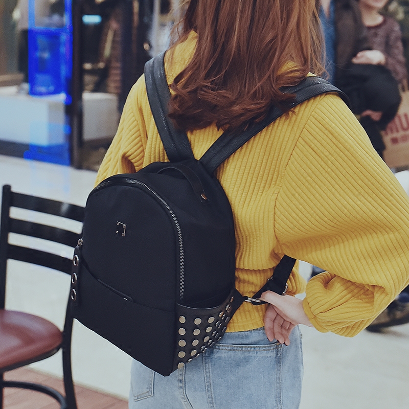 / 包包新款潮牛津布雙肩包女韓版學院風尼龍背包個性鉚釘小書包