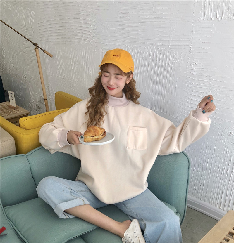 秋冬女裝韓版BF風寬松撞色pp home加絨加厚套頭超火衛衣上衣外套