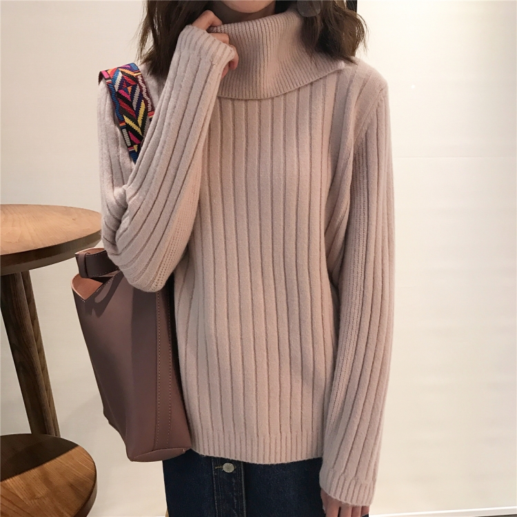 / 韓國秋冬款打底必備高領螺紋長袖修身套頭百搭針織毛線毛衣女