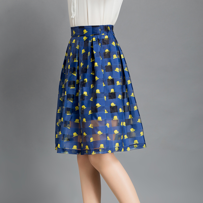 / 夏新款百褶不規則網紗紗裙半身裙蓬蓬裙中長款玻璃紗高腰雪紡