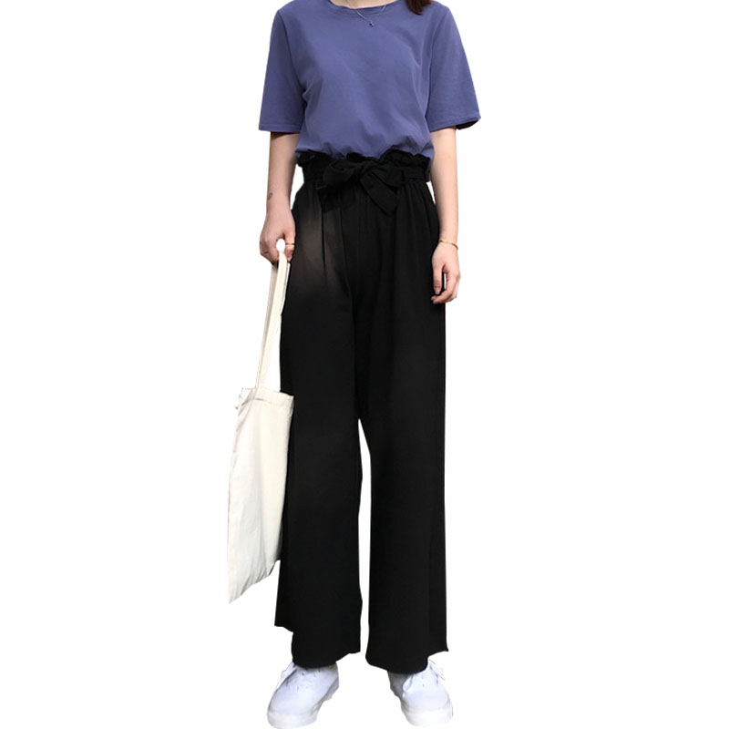 / 夏裝女裝韓版松緊腰闊腿褲九分褲寬松顯瘦休閑褲高腰直筒褲長褲潮