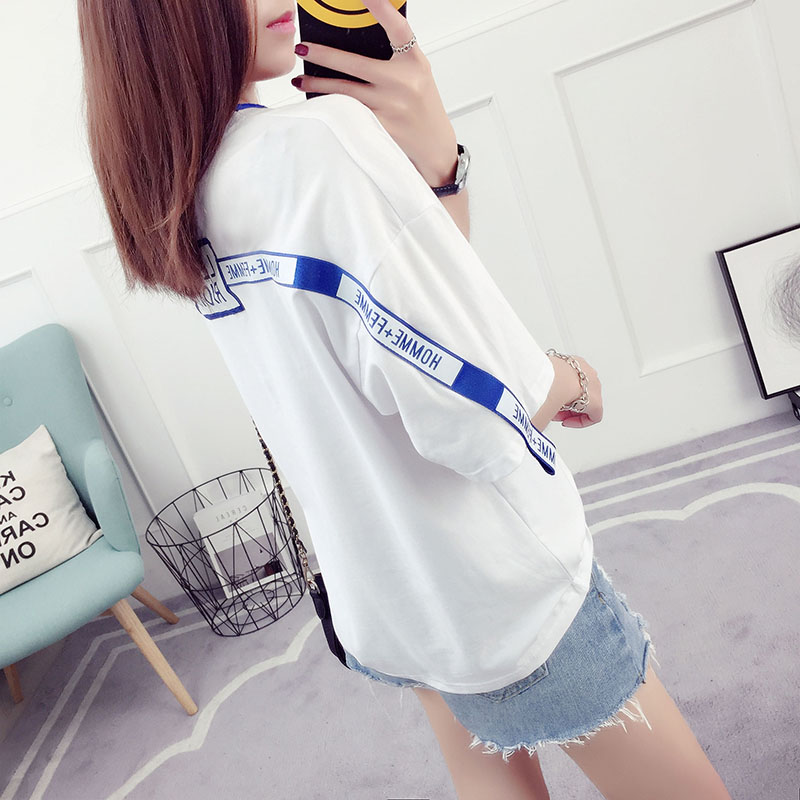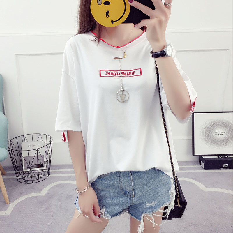 夏裝新款韓版學生潮百搭衣服女夏季短袖寬松t恤破洞時尚上衣