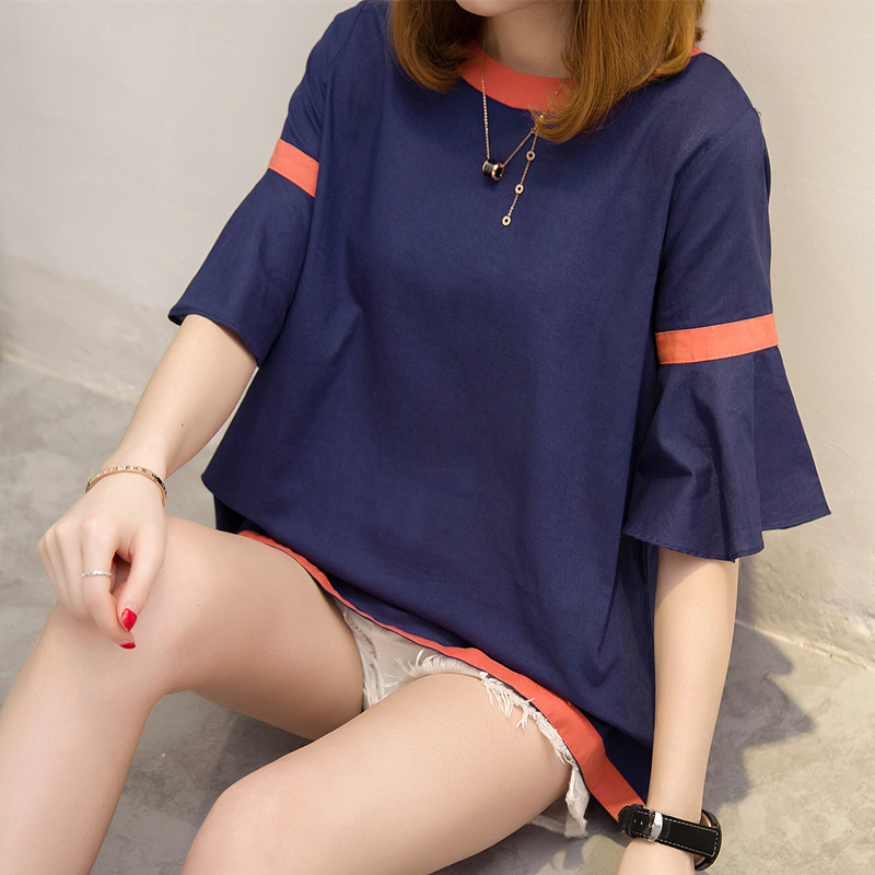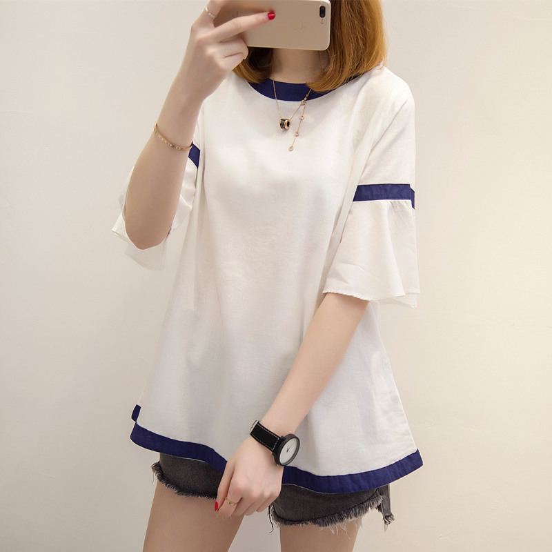 夏裝新款女裝荷葉袖韓版薄款寬松t恤女體恤衫百搭上衣服女夏