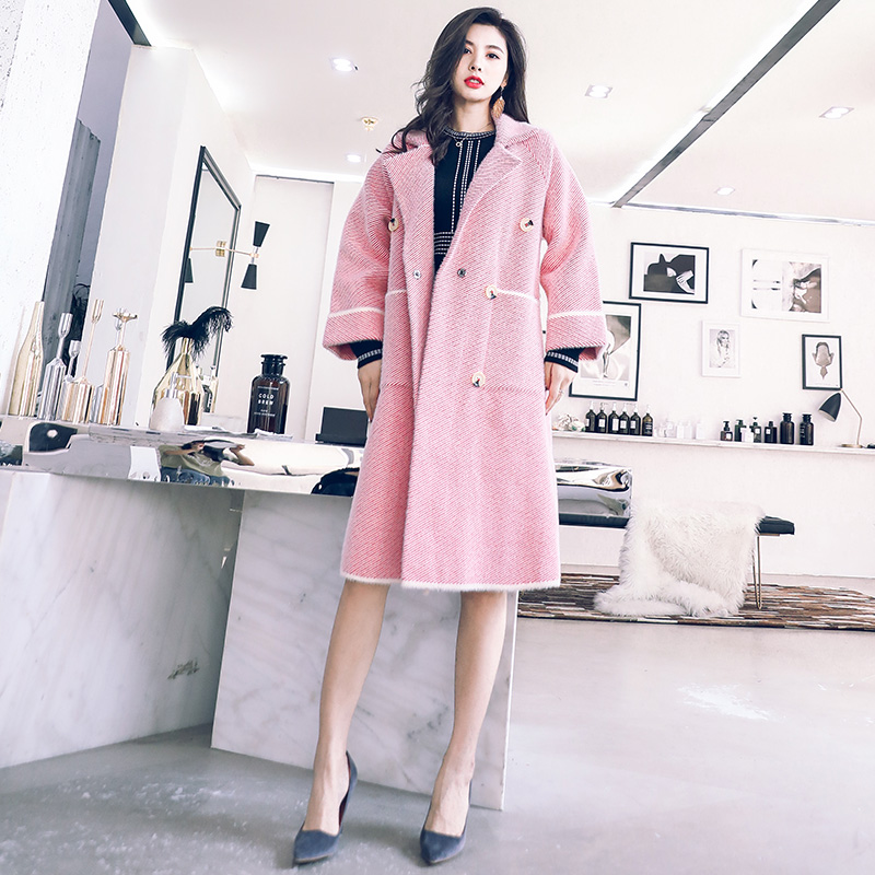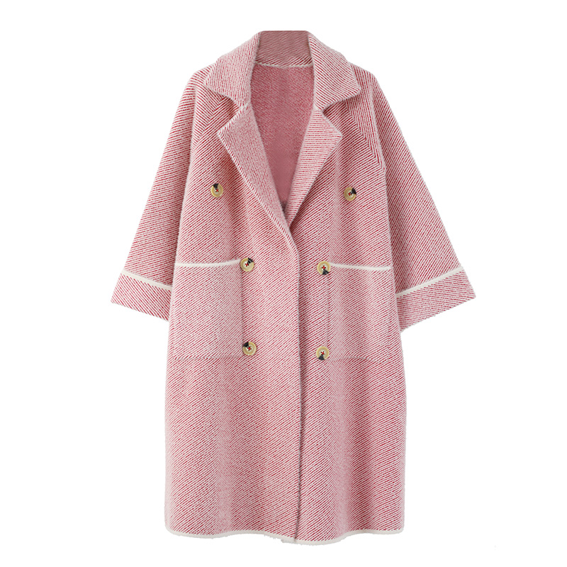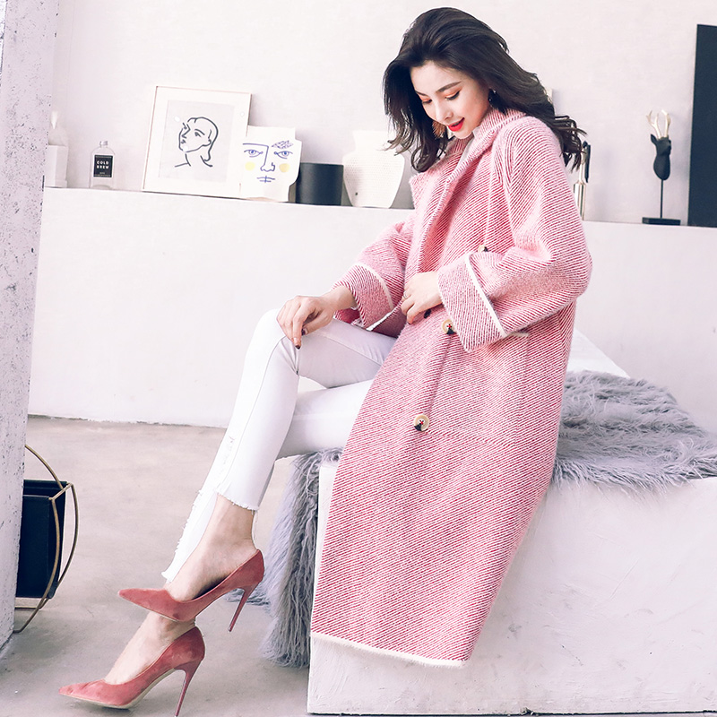 / 毛呢外套女中長款韓版2018新款秋冬條紋加厚過膝網紅寬松呢子大衣