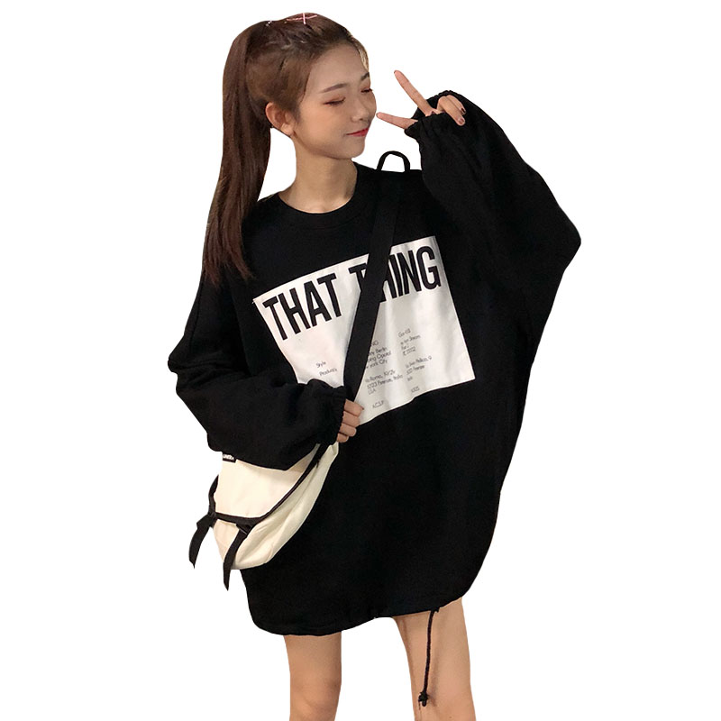 2018新款秋季女裝韓版中長款原宿風寬松字母套頭超火衛衣上衣外套