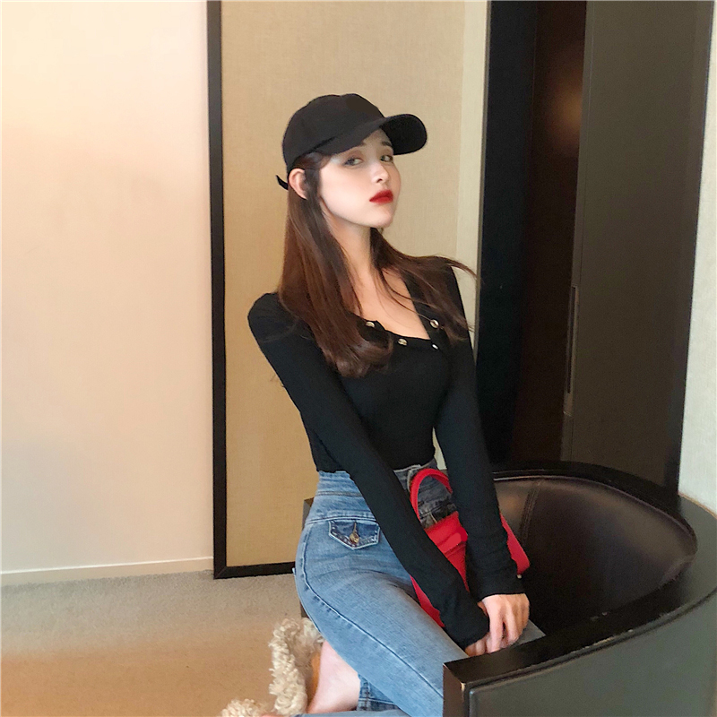 百搭修身打底衫女裝新款韓版顯瘦不規則長袖T恤chic慵懶風上衣潮