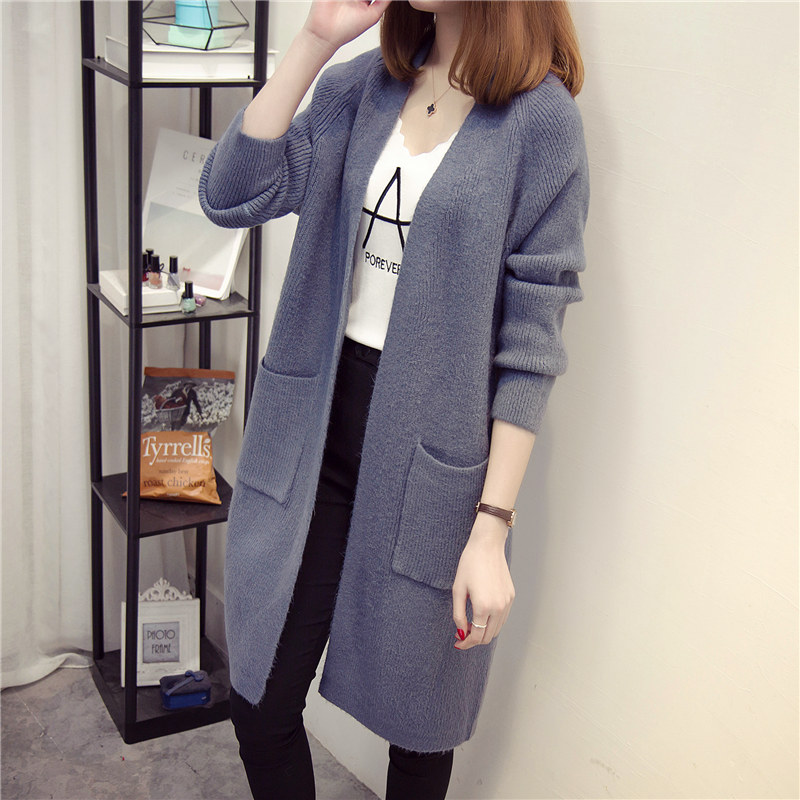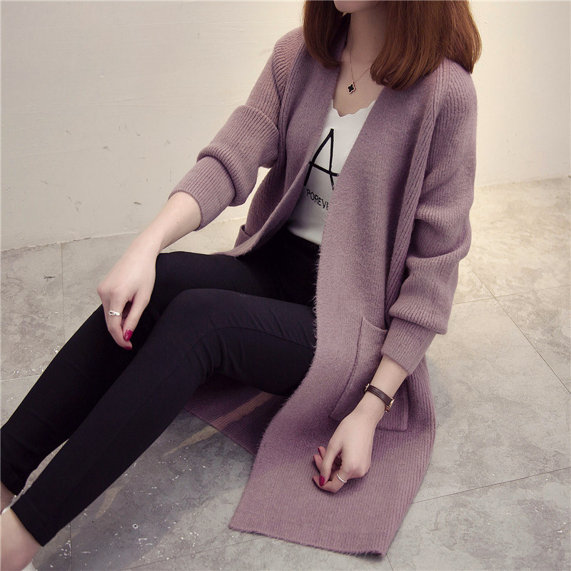 韓版寬松百搭長袖針織衫女開衫中長款毛衣外套女裝春裝新款潮