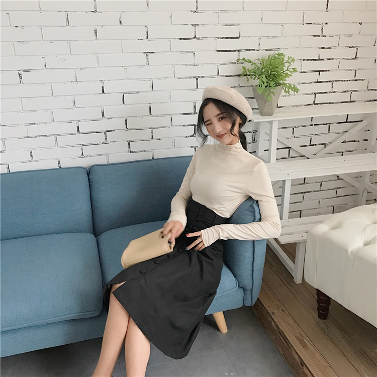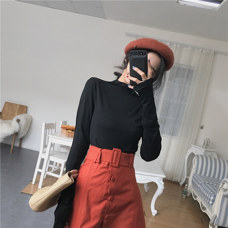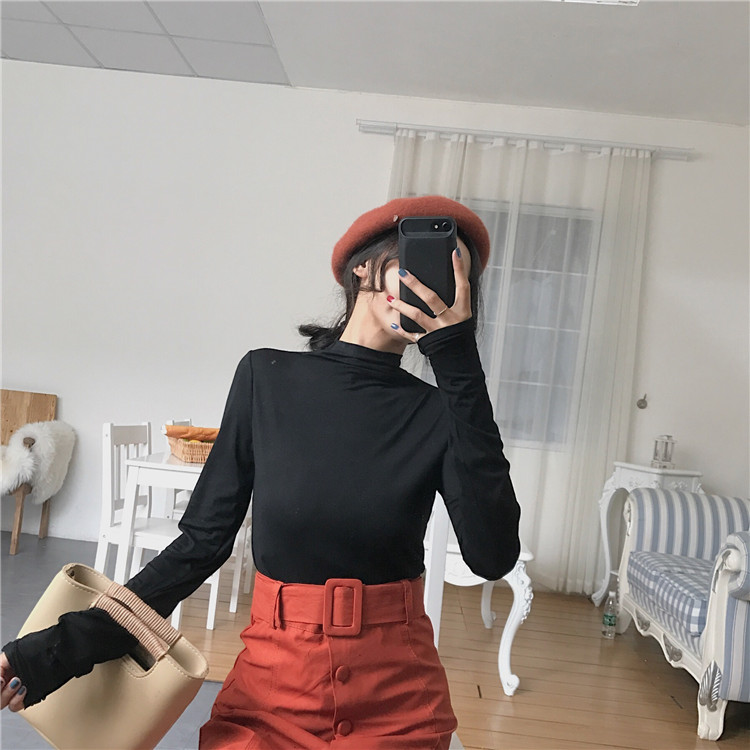 秋裝女2018新款韓版Chic基礎款氣質百搭顯瘦高領純色打底衫T恤潮