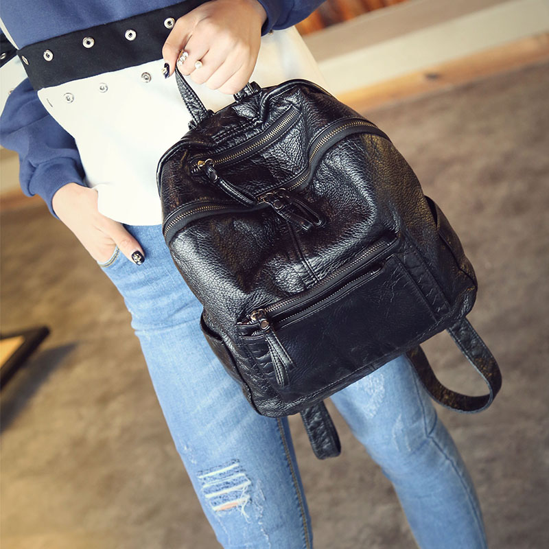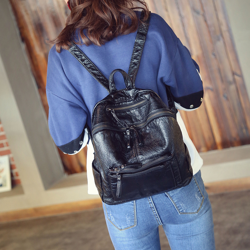 水洗皮雙肩包女韓版新款背包時尚休閑書包學院風包包秋冬潮軟