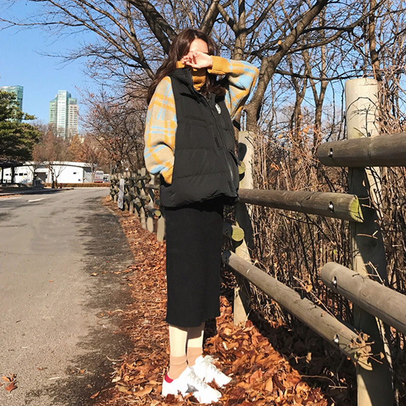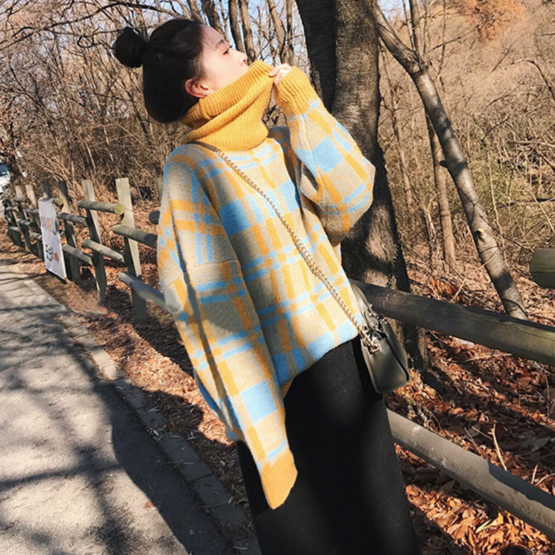 1339藍色格子毛衣黑色裙子