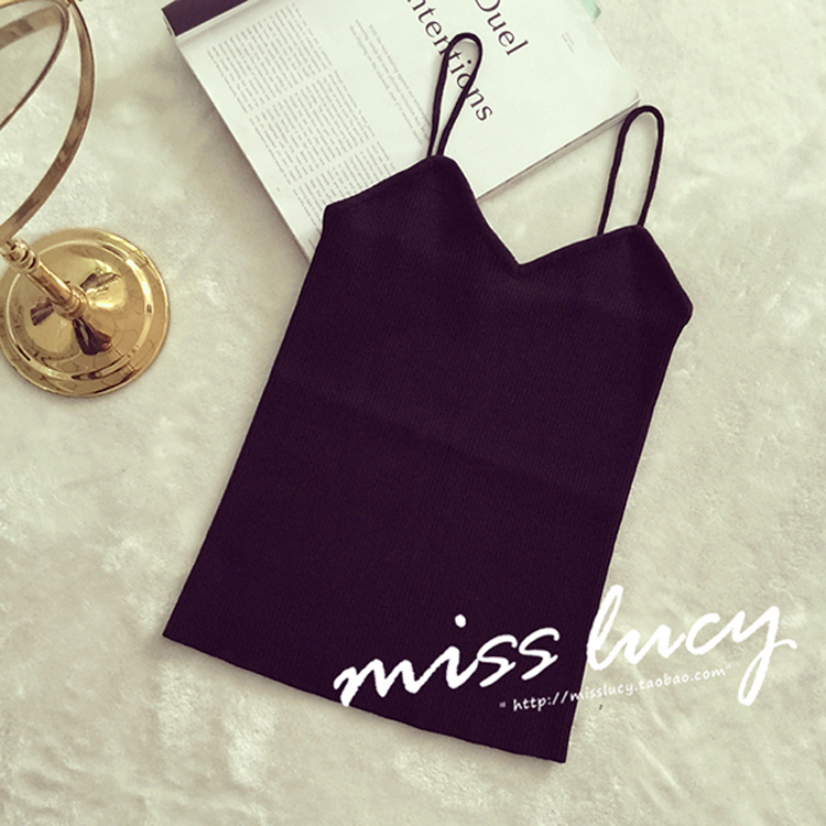 2017新款夏季韓版百搭純色性感V領打底針織吊帶背心女短款小吊帶