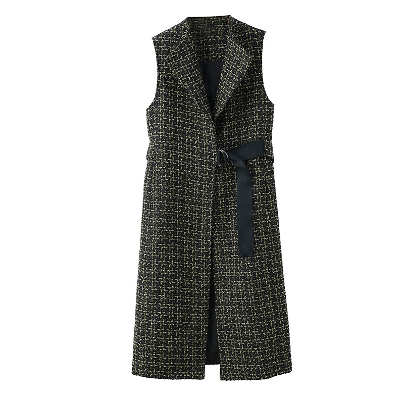 2018秋冬新款格子馬甲女中長款韓版毛呢西裝背心坎肩冬季馬夾外套