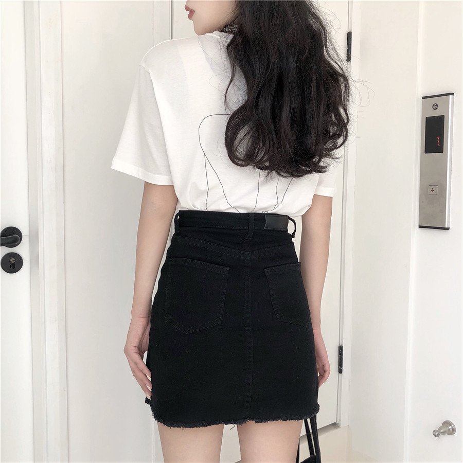 / 復古港味chic風休閑經典高腰顯瘦毛邊半身裙百搭牛仔短裙女夏季潮