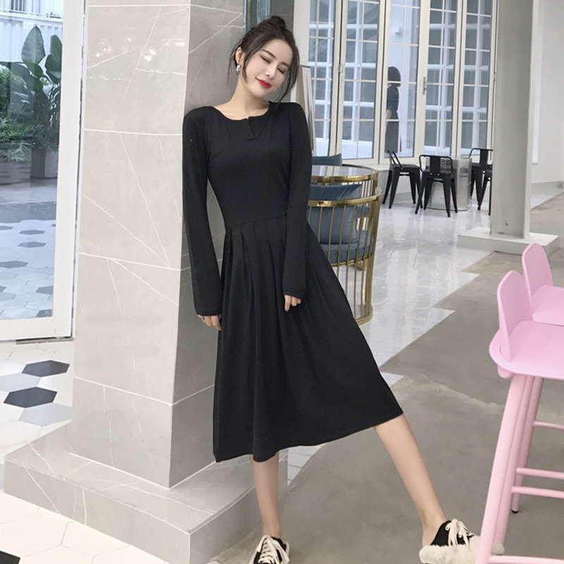 / 毛衣加裙子連件套女秋冬裝新款寬松V領針織馬甲氣質中長款連衣裙