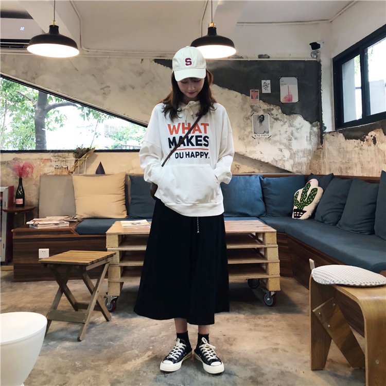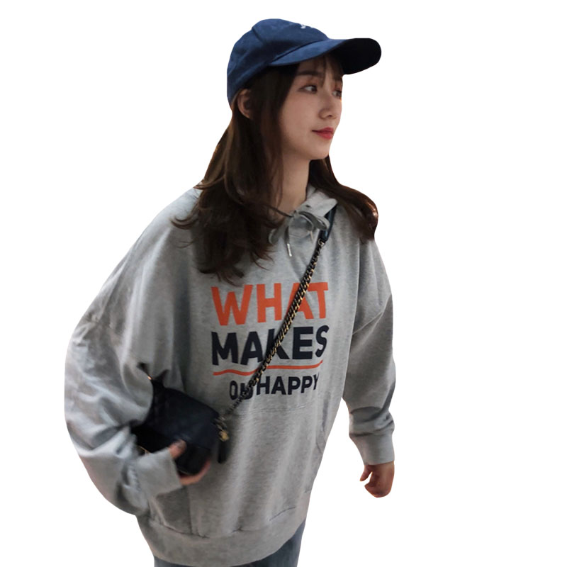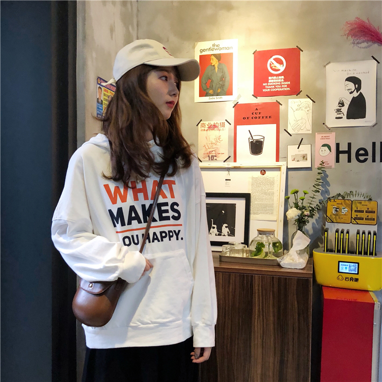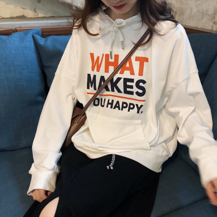 秋季女裝韓版chic中長款原宿風寬松字母套頭連帽超火衛衣上衣外套