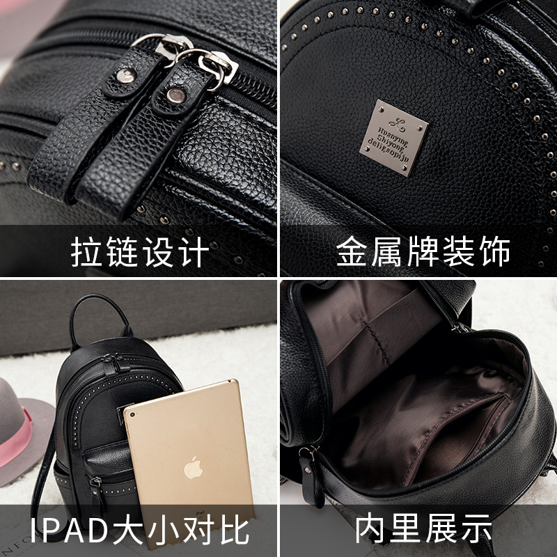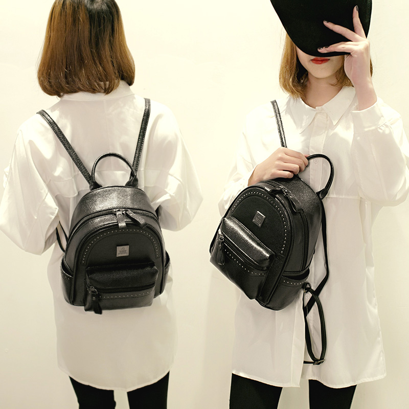 雙肩包女韓版pu時尚百搭學院風迷你鉚釘包包新款女士背包女潮