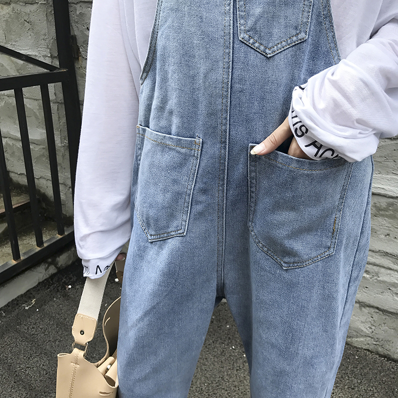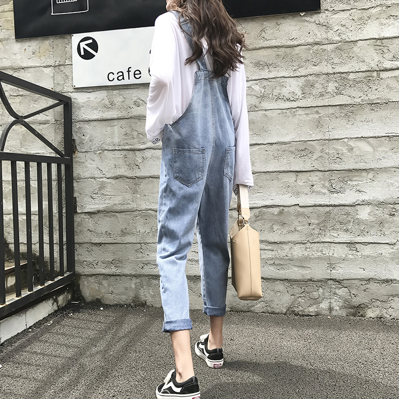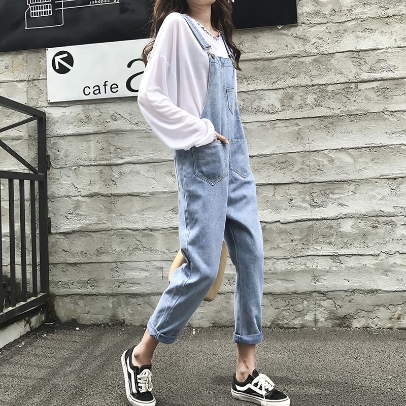 / 秋裝女新款韓版學生可愛休閑背帶牛仔褲寬松長褲子時尚洋氣連體褲