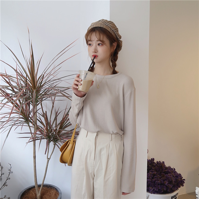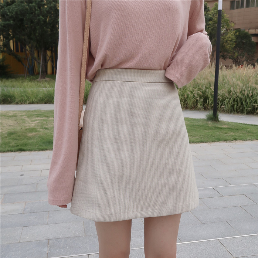 / 韓版時尚休閑套裝秋季女裝chic打底T恤上衣+高腰A字半身裙兩件套