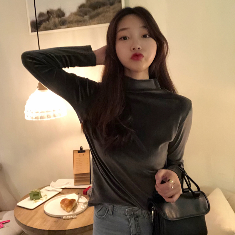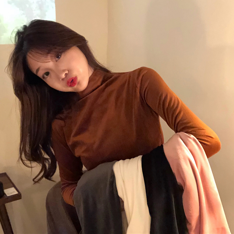 絲絨純色高領長袖T恤女冬裝2018新款韓版修身加厚保暖打底衫上衣