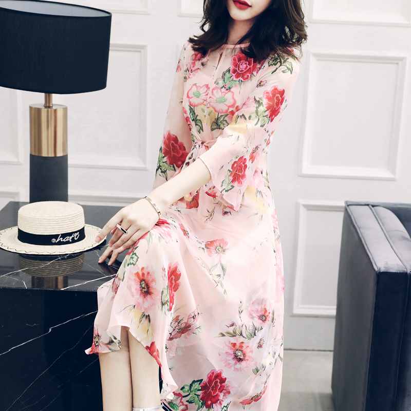 S秀淑女氣質2018夏季新款超仙顯瘦吊帶小背心印花裙子套裝兩件套