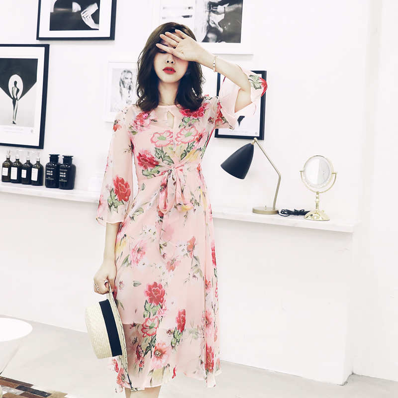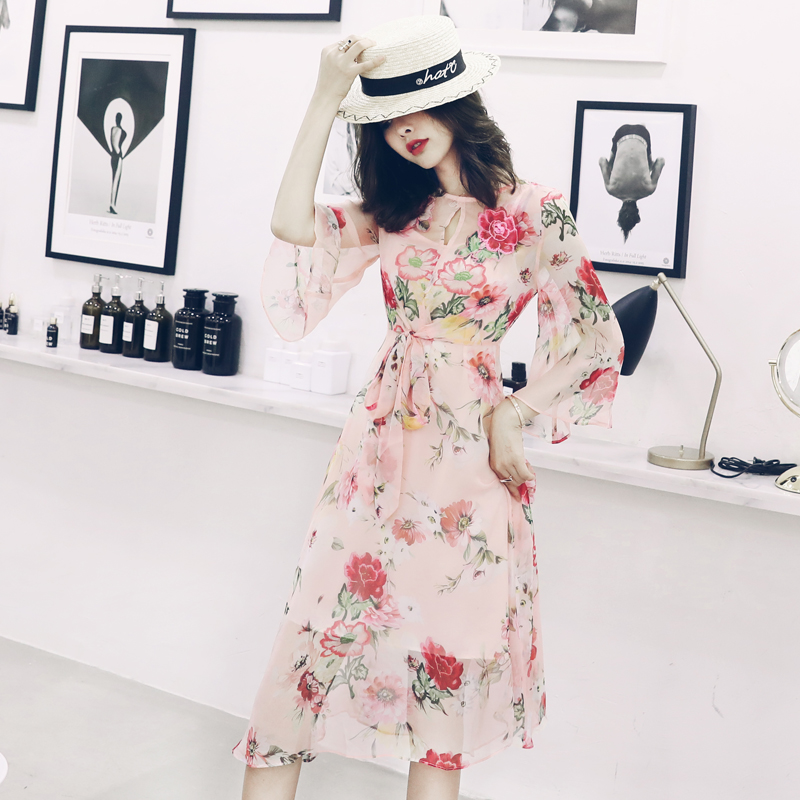 / S秀淑女氣質2018夏季新款超仙顯瘦吊帶小背心印花裙子套裝兩件套