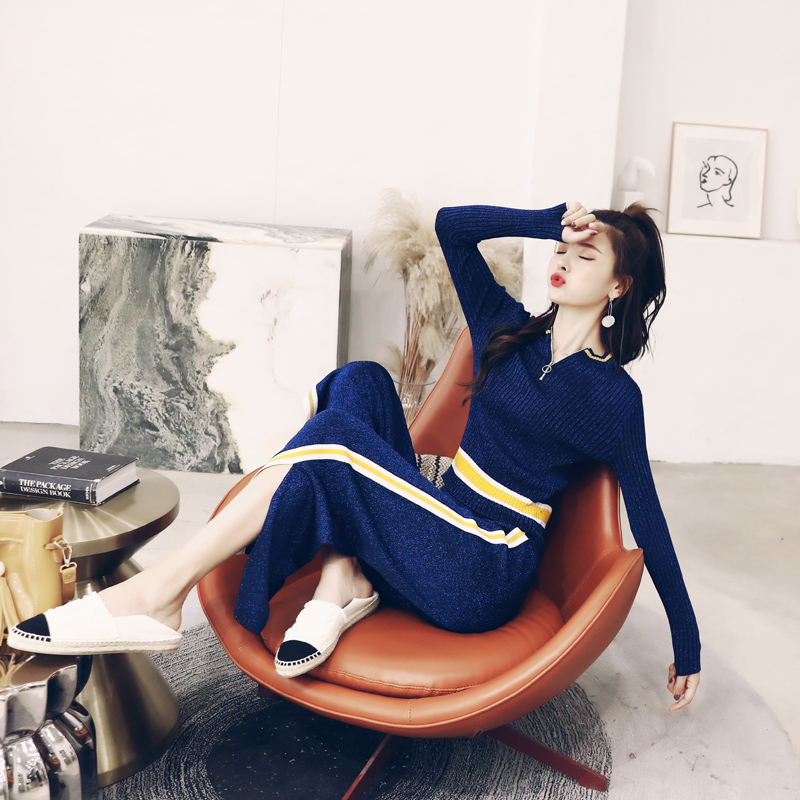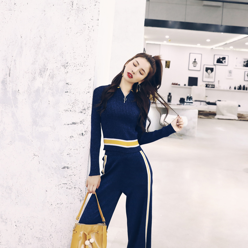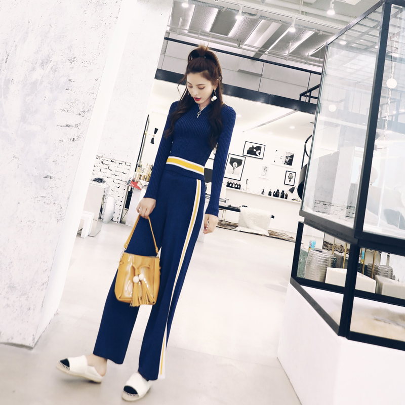 / 修身針織衫上衣長褲闊腿褲兩件套裝2018歐洲秋裝新款歐貨站潮女裝