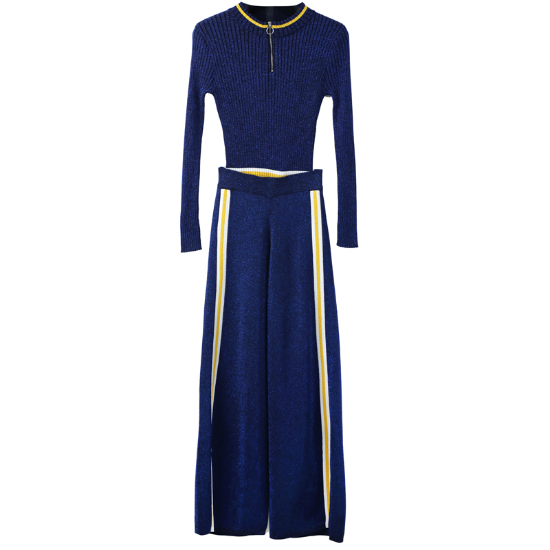 修身針織衫上衣長褲闊腿褲兩件套裝2018歐洲秋裝新款歐貨站潮女裝