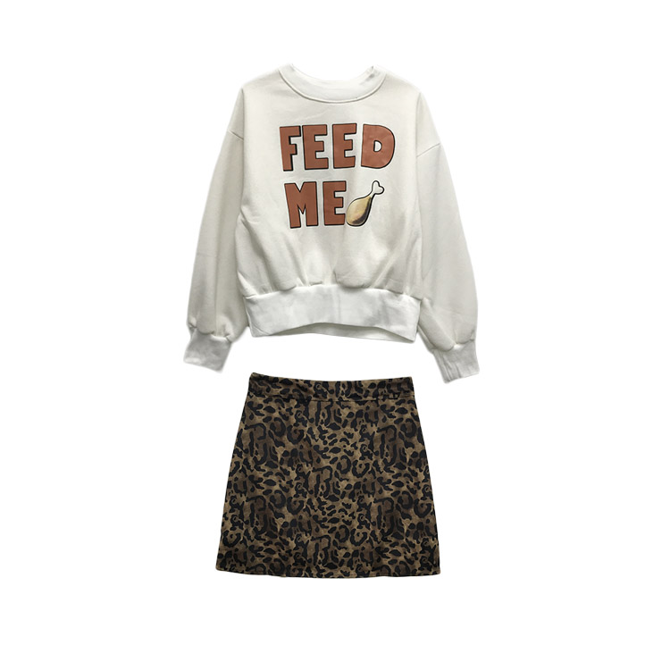 / 復古秋裝女2018新款套裝百搭字母印花衛衣女+百搭豹紋短裙兩件套