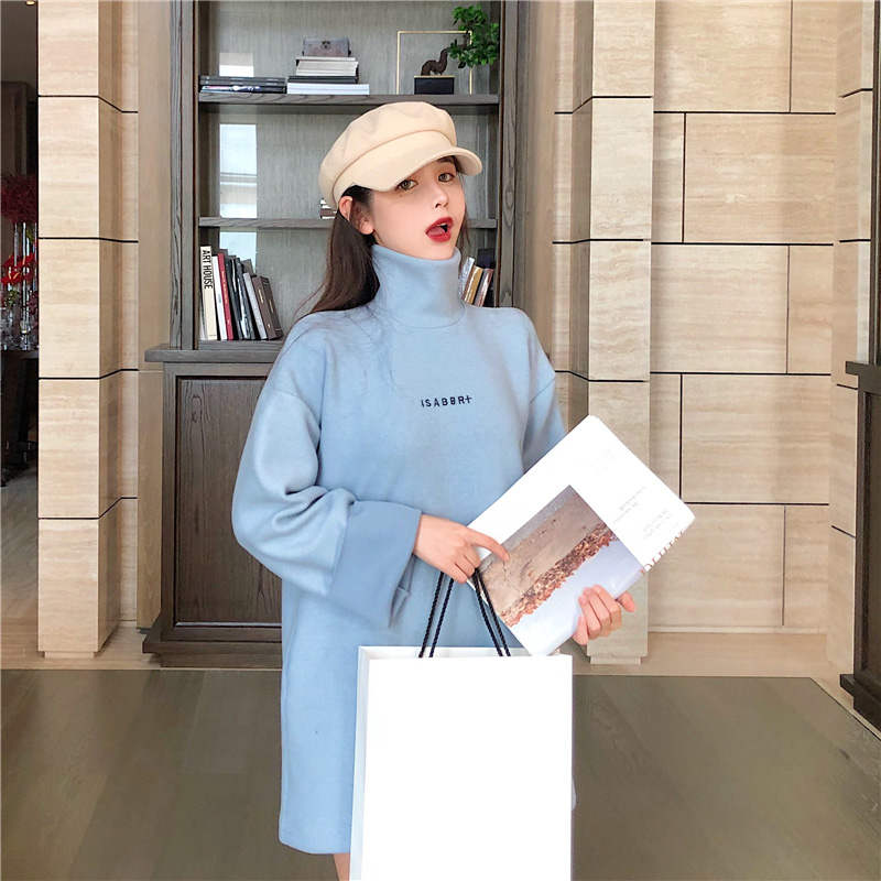/ 韓風秋冬新款加厚時尚寬松小清新上衣女裝百搭高領中長款字母衛衣