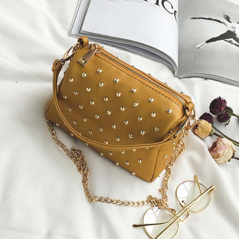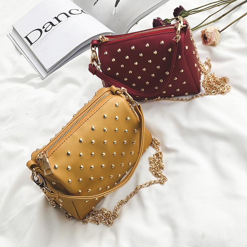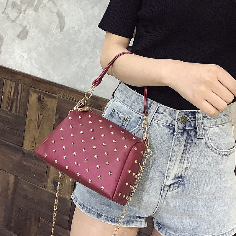 包包新款潮迷你鏈條手提包韓版斜挎包女小包百搭鉚釘單肩女包