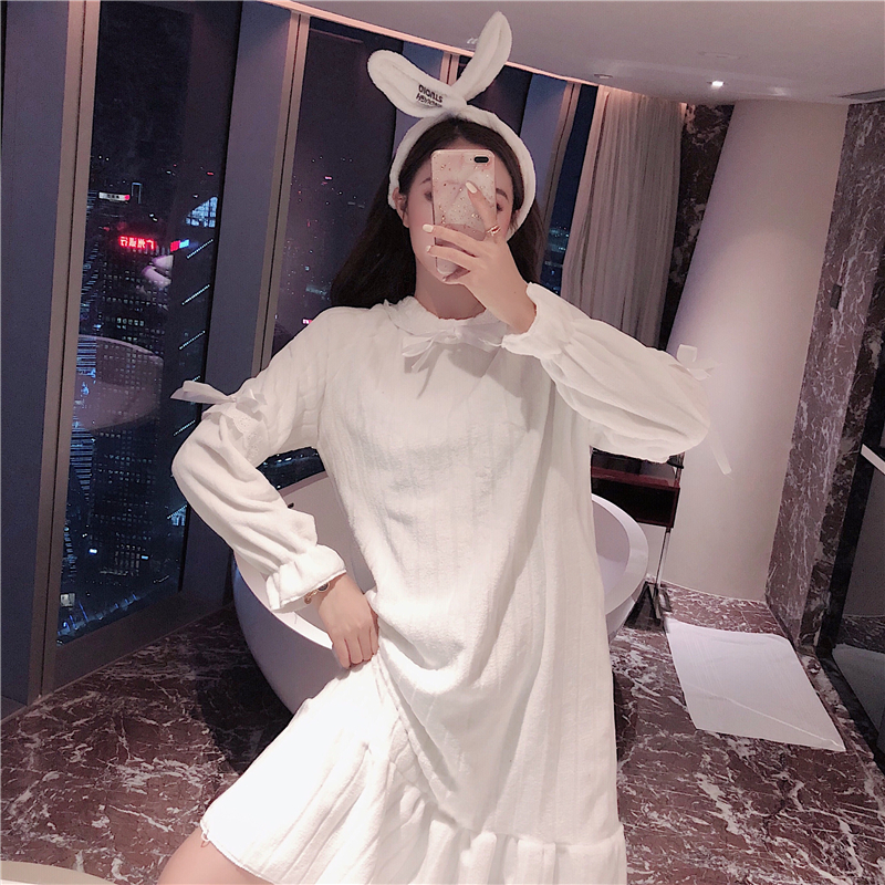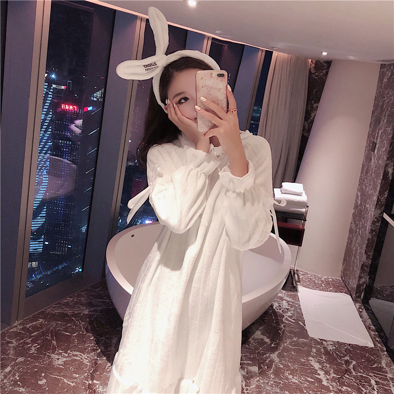 / 初秋溫柔風連衣裙女裝秋2018新款女韓版溫暖舒適中長款毛絨睡衣裙