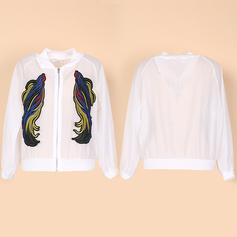 春秋夏季新款刺繡棒球服白色薄外套女防曬衣韓版寬松短夾克衫