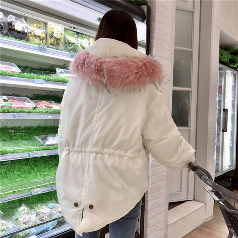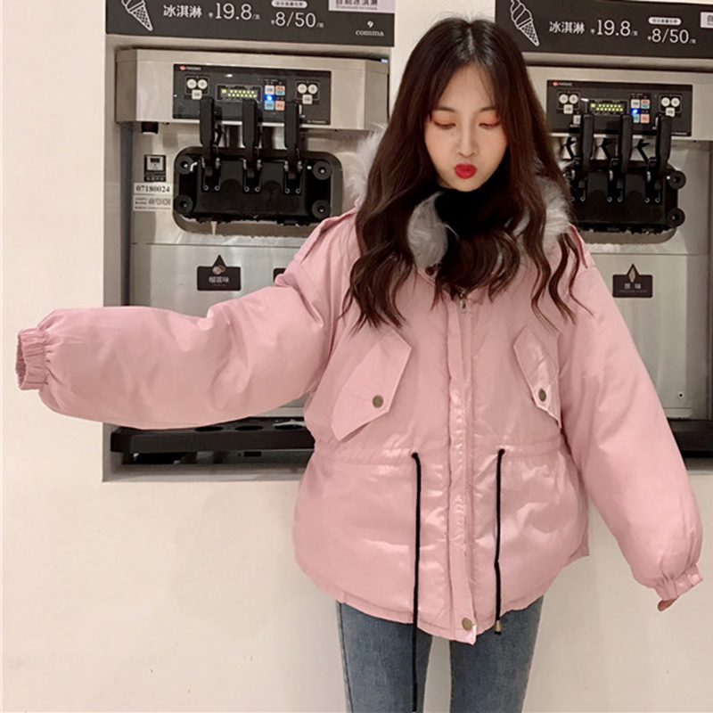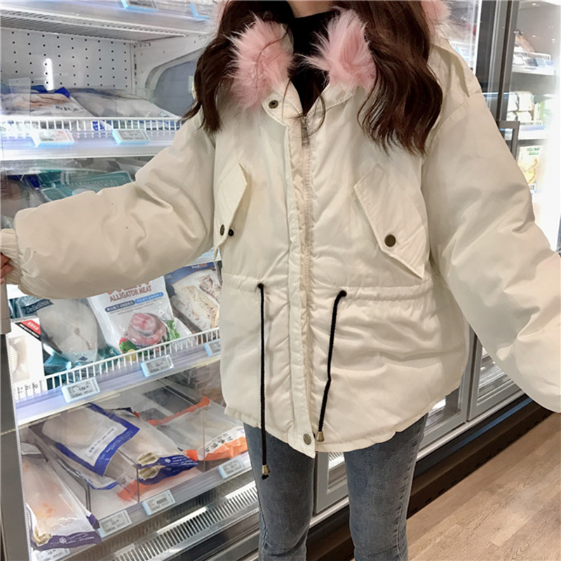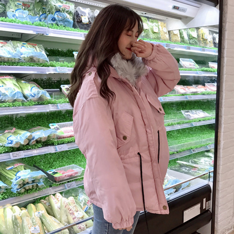毛領連帽加厚棉襖2018冬季女裝新款學生寬松中長款外套休閑棉衣服
