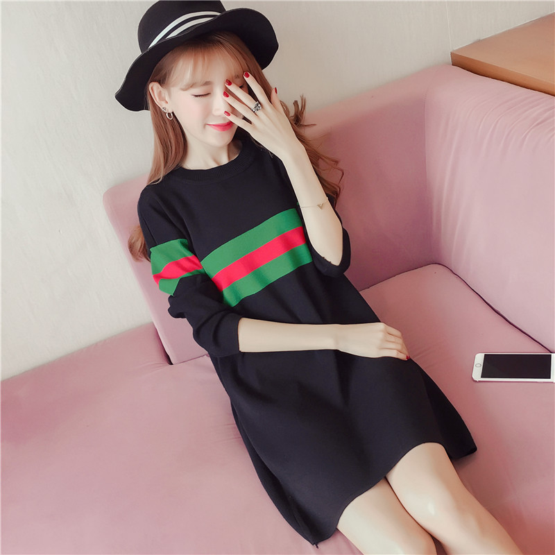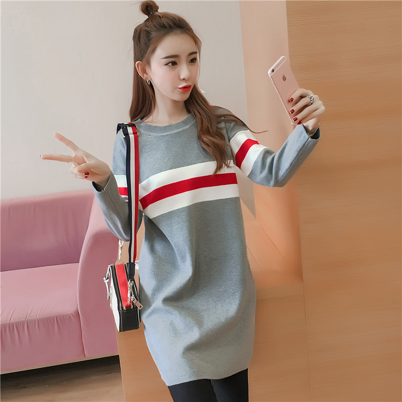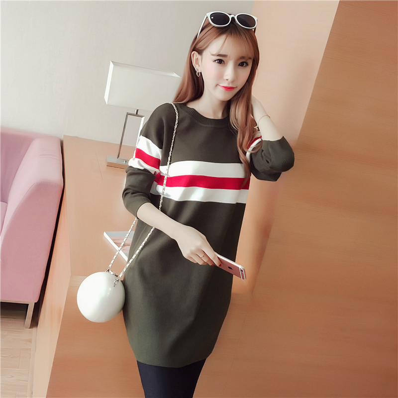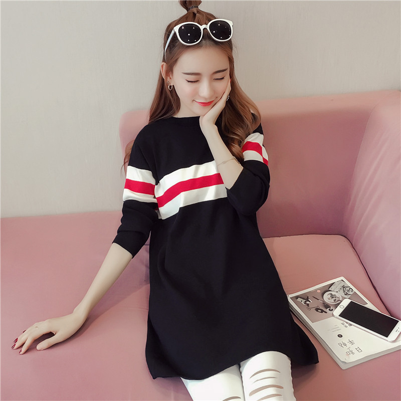 秋季女裝韓版圓領中長款針織衫套頭女毛衣長袖打底冬裝新款潮